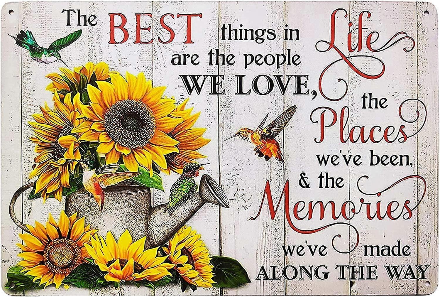 Vintage Sunflower Tin Signs Birds And Butterfly Funny Inspiration Quotes Farmhouse Home Wall Decor Metal Signs 8X12 Inch