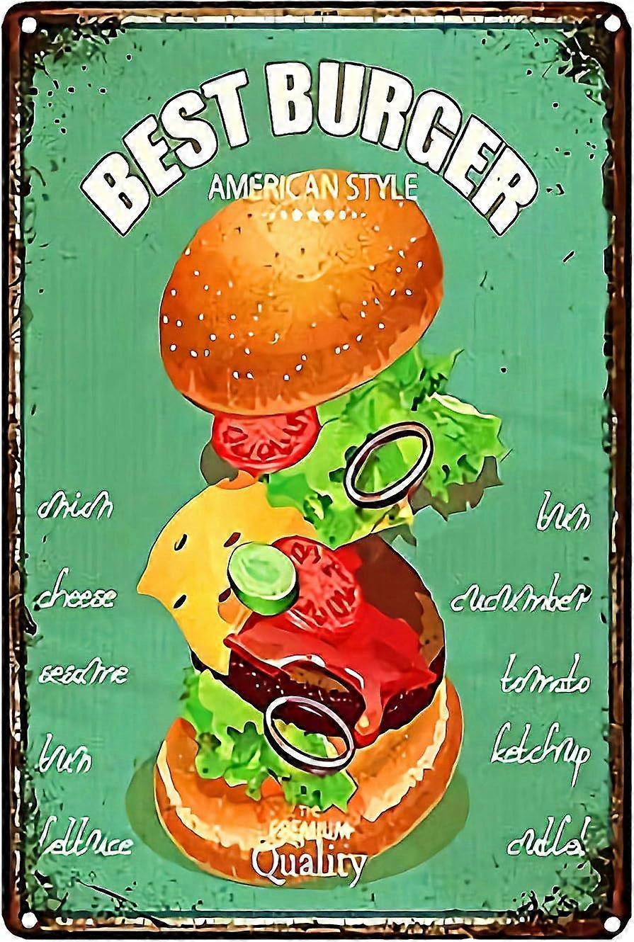 Vintage Tin Poster DeliciousBest Burger Premium Quality Metal Tin Sign 8x12 Inch Retro Art Home Kitchen Bar Restaurant Diner Dining Car Garage Wall 8X