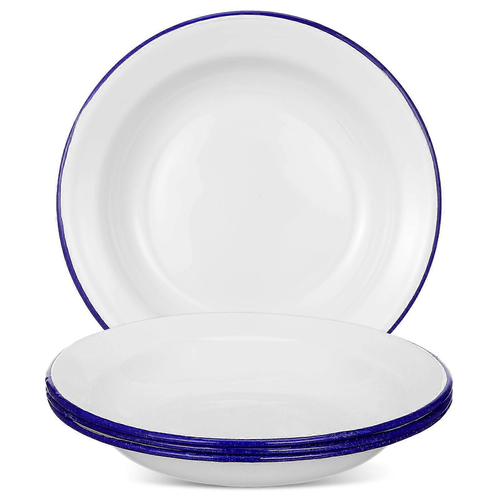 Vintage Plate Set Enamel Plates And Bowls Retro Style For Family Friends 4Pcs 16.00X16.00X3.00CM