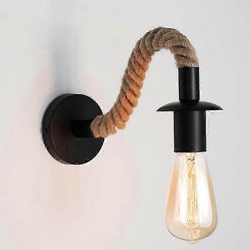 Vintage Hemp Wall Lamp Wooden E27 Indoor Outdoor Industrial Light 2024
