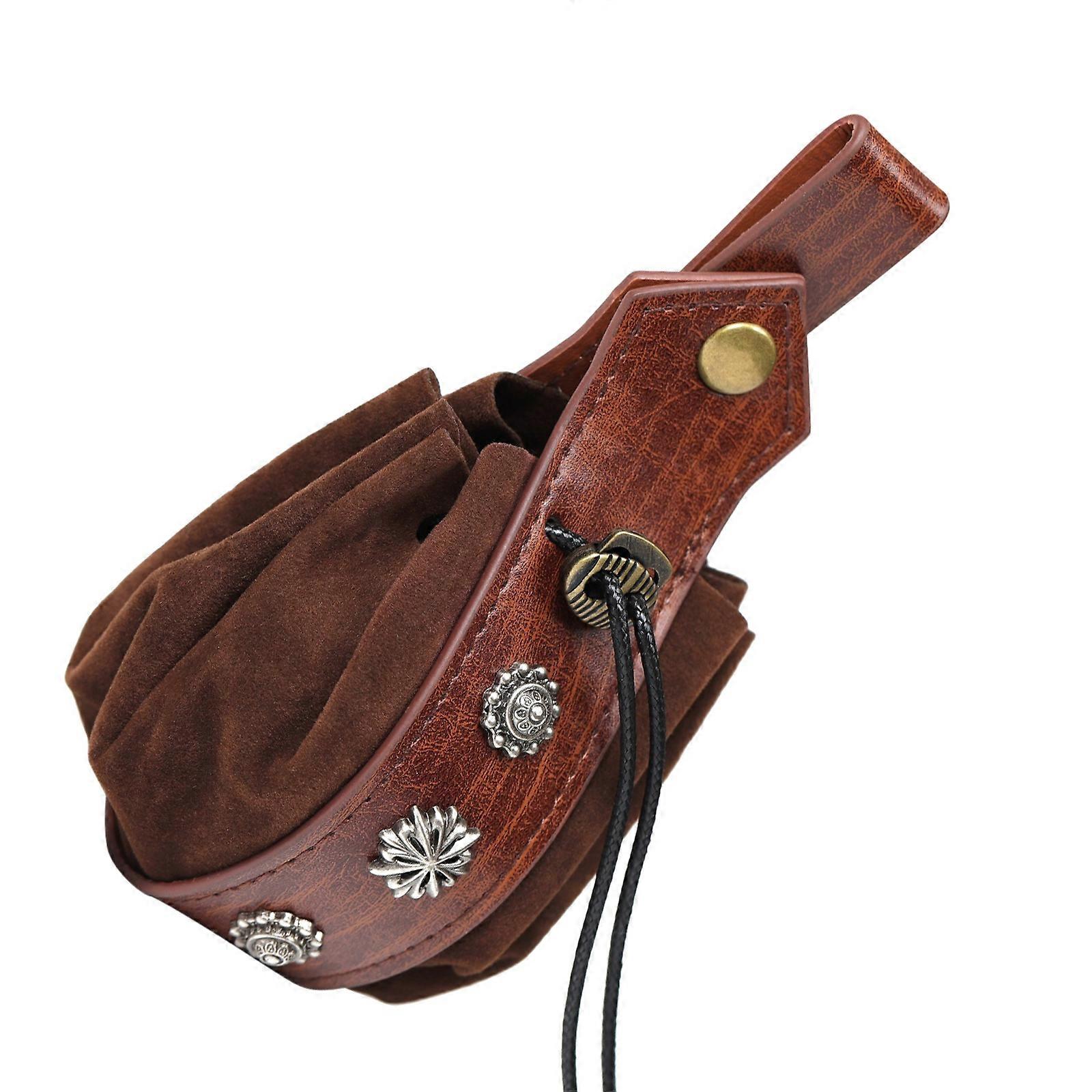 Vintage Portable Belt Pouch Medieval Style Drawstring Bag Cosplay Dices Bag PU Leather Coin Purse Halloween Waist Pack dark brown