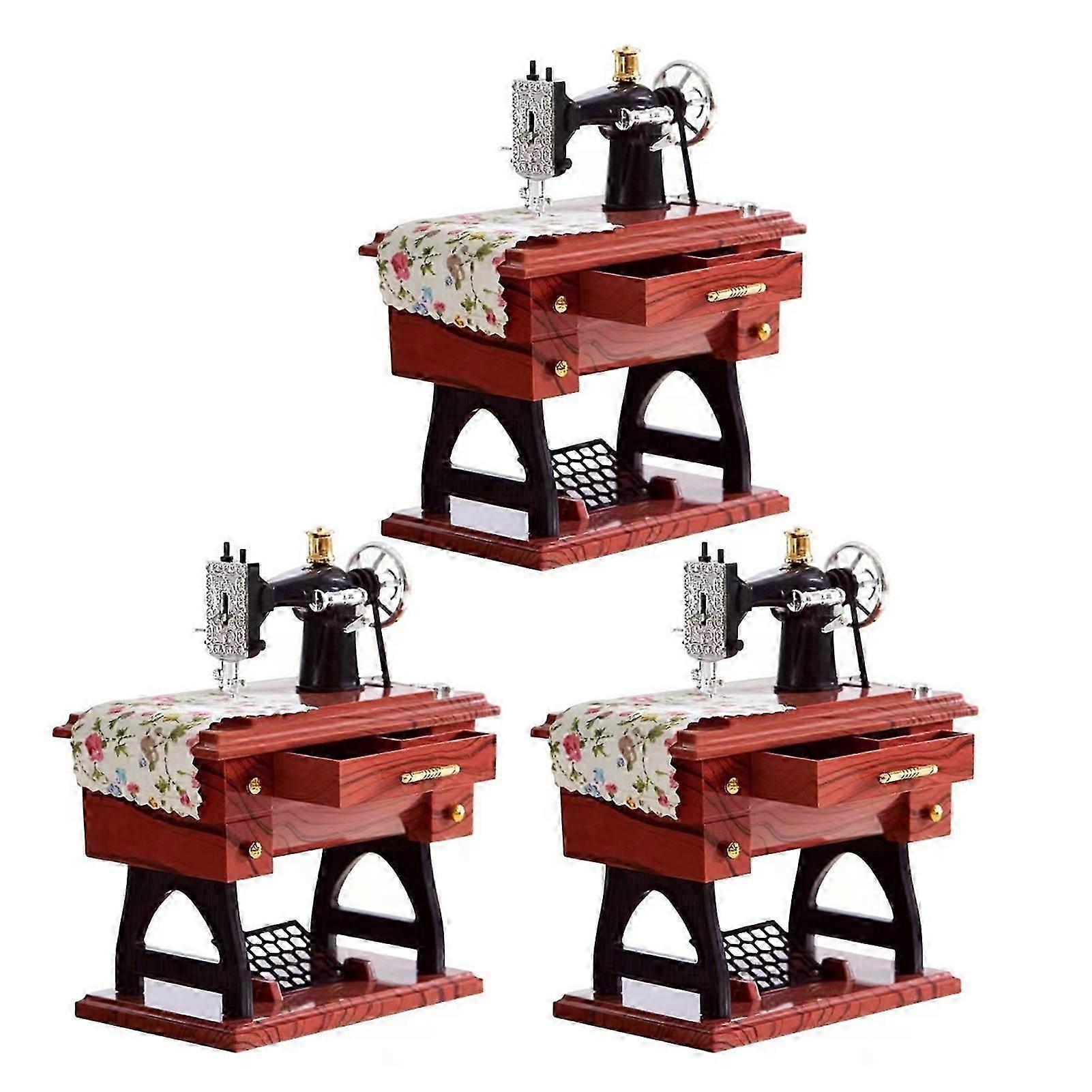 Vintage Sewing Machine Music Box Toy Retro Mechanical Hand Cranked Musical Box Gift & Hoe Decor