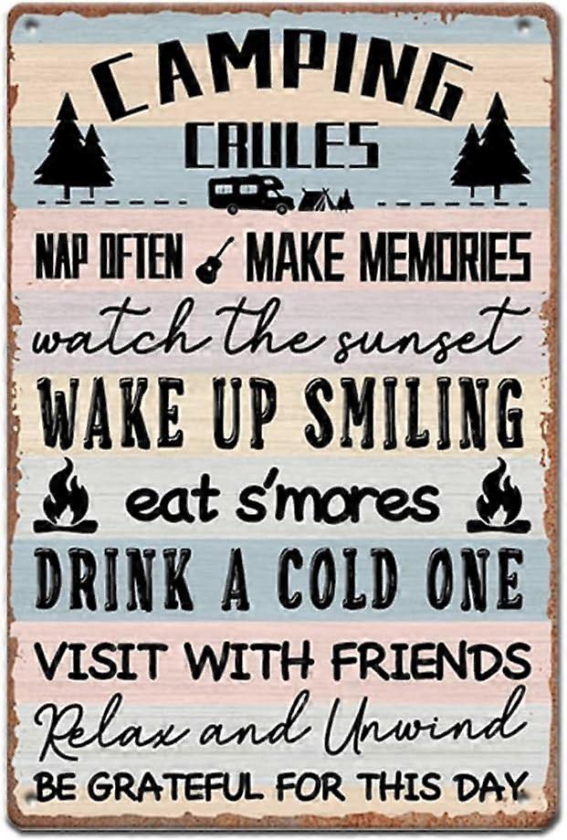 Vintage Metal Tin Sign Camping Rules Sign Decor for Camping Enthusiasts Rustic Outdoor Signage for Campsites Camping Metal Sign Funny Camping Themed D