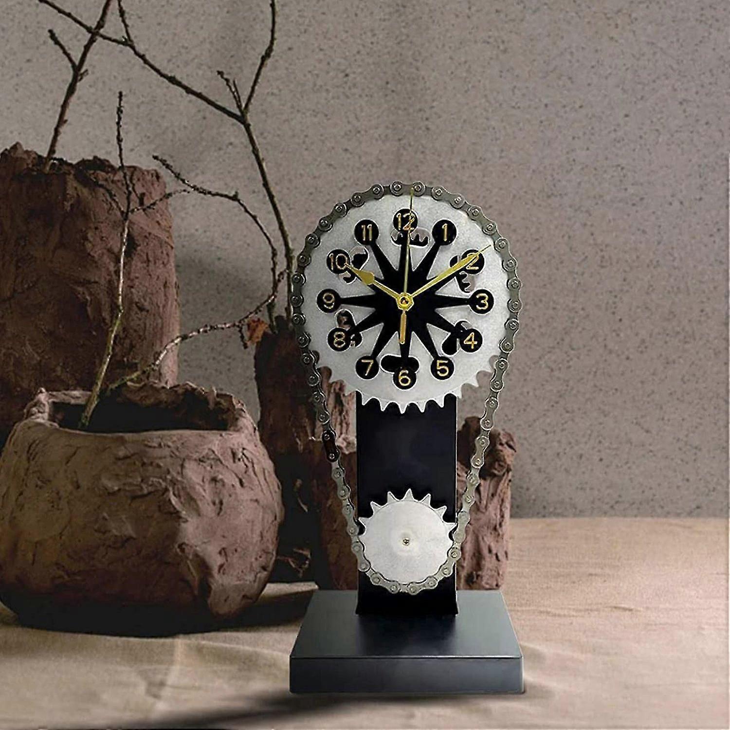 Vintage Metal Table Clock - Rotating Gear Timing Chain - Home Decor AU