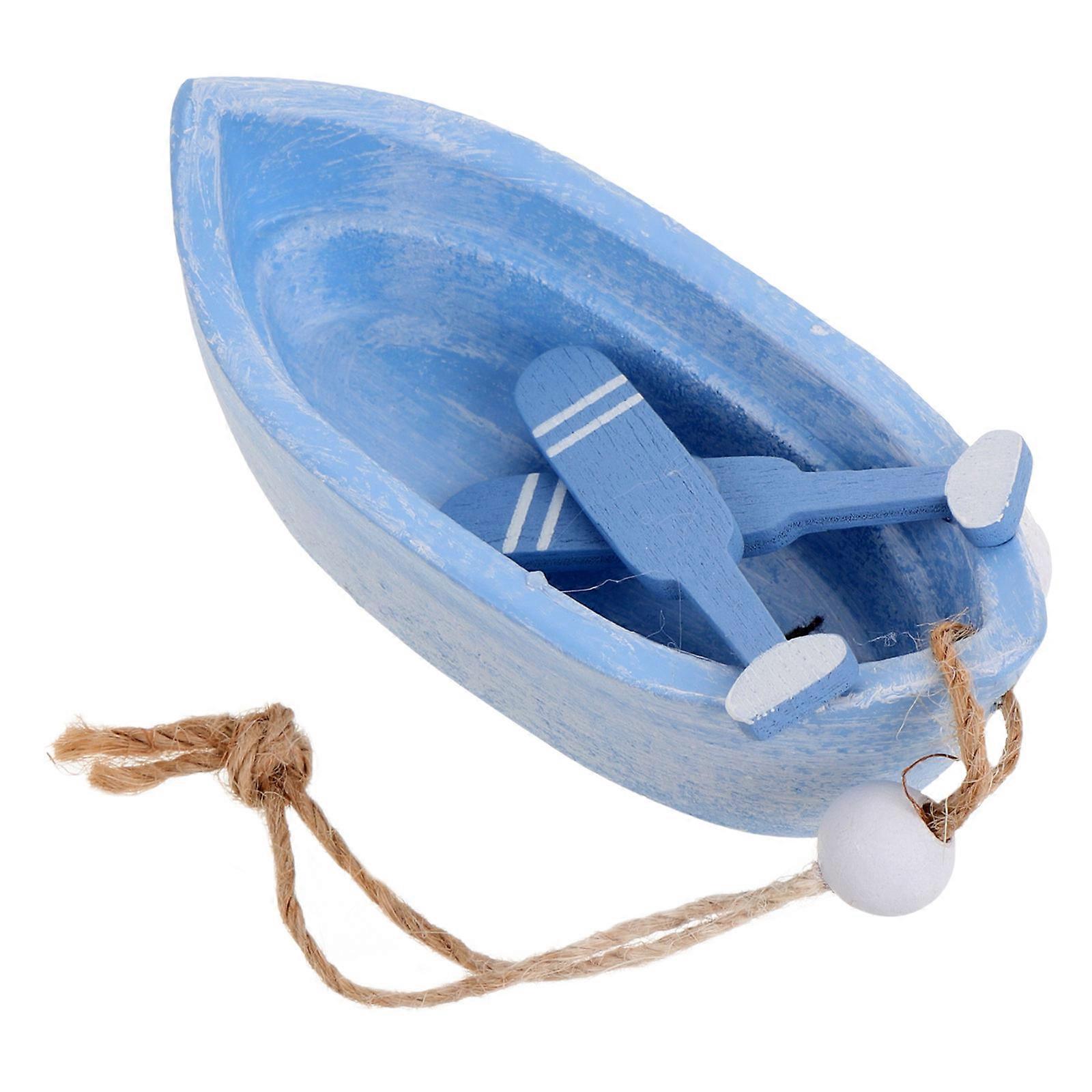 Vintage Light Blue Miniature Beach Boat Model for Dollhouse Nautical Decor with Paddles – Seaside Micro Landscape Ornament