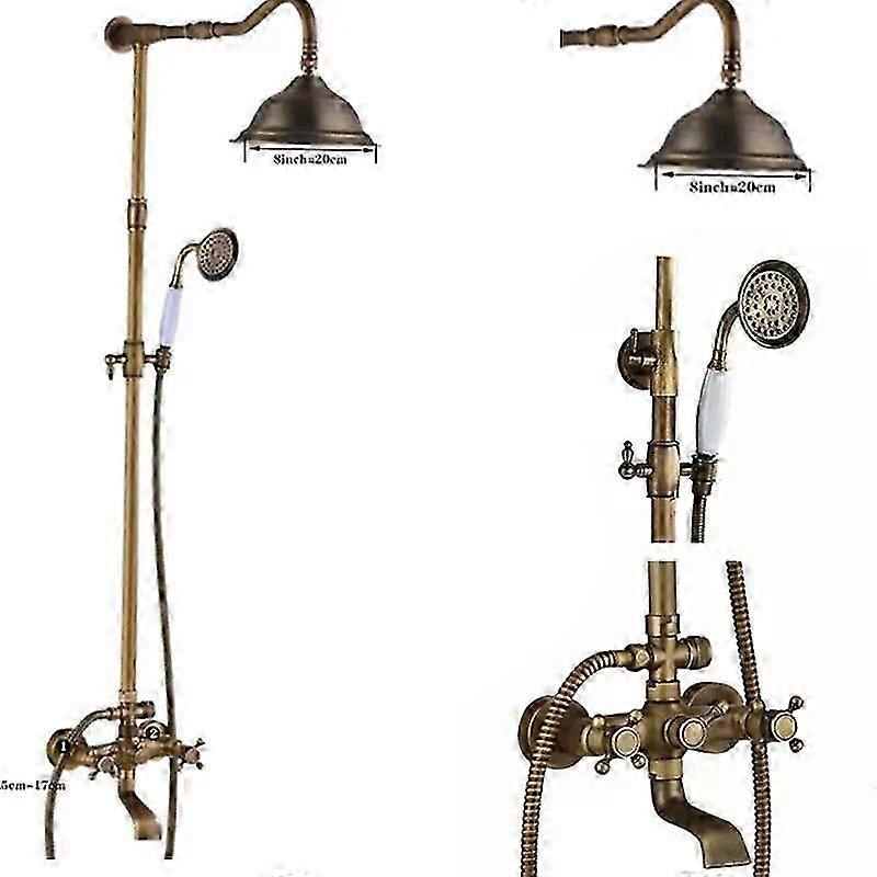 Vintage Wall Mounted Shower Set Faucet Single Handle with Hand Shower and Shelf Bathroom Mixer Shower Bracket
