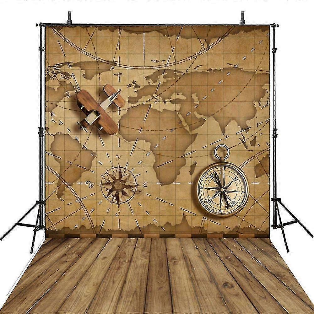 Vintage Wooden Photography Backdrop (150x220 cm) - World Map Design for Children's Photos, Studio Props