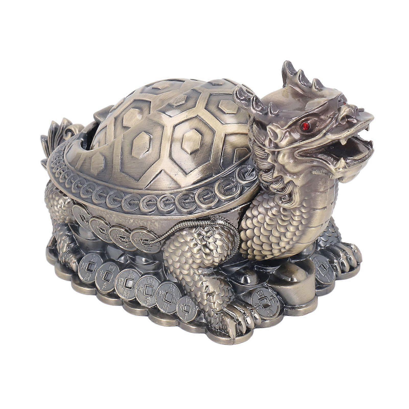 Vintage Ashtray 3 Slots Windproof Lid Colorfast Zinc Alloy Tortoise Dragon Metal Ashtray for Family Office Outdoor