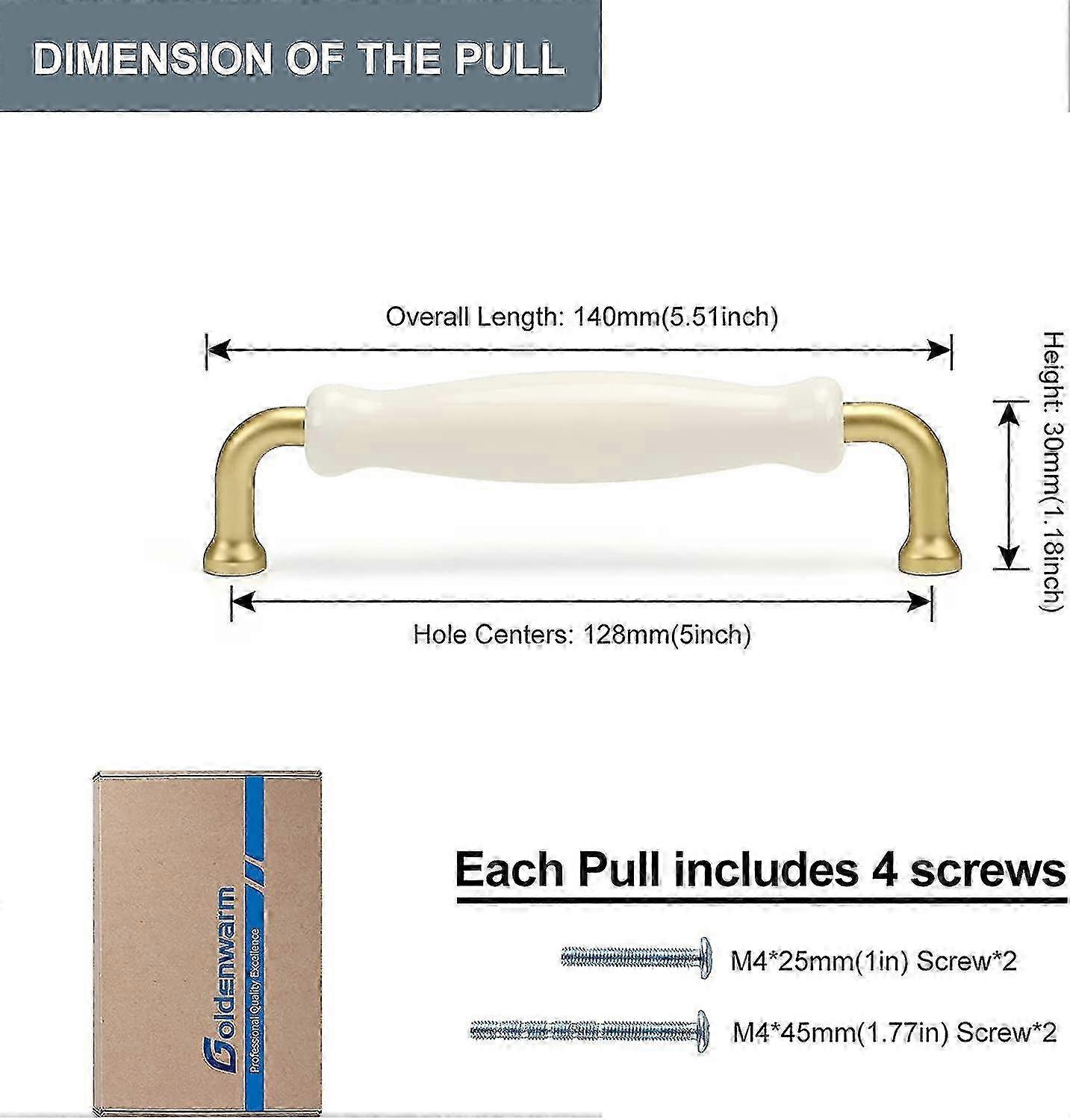 Vintage White Porcelain Kitchen Cabinet Handles, Set of 10, 128mm Center Distance