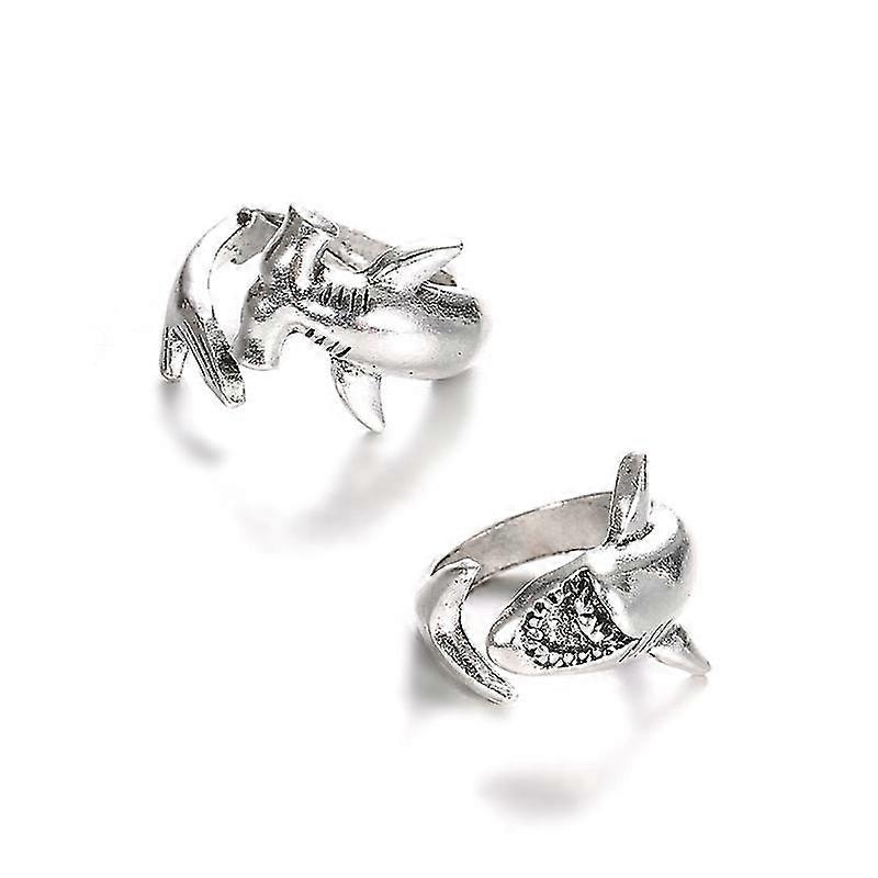 Vintage Adjustable Opening Ring 2x White Shark & Hammerhead Shark Rings Jewelry-MXBC