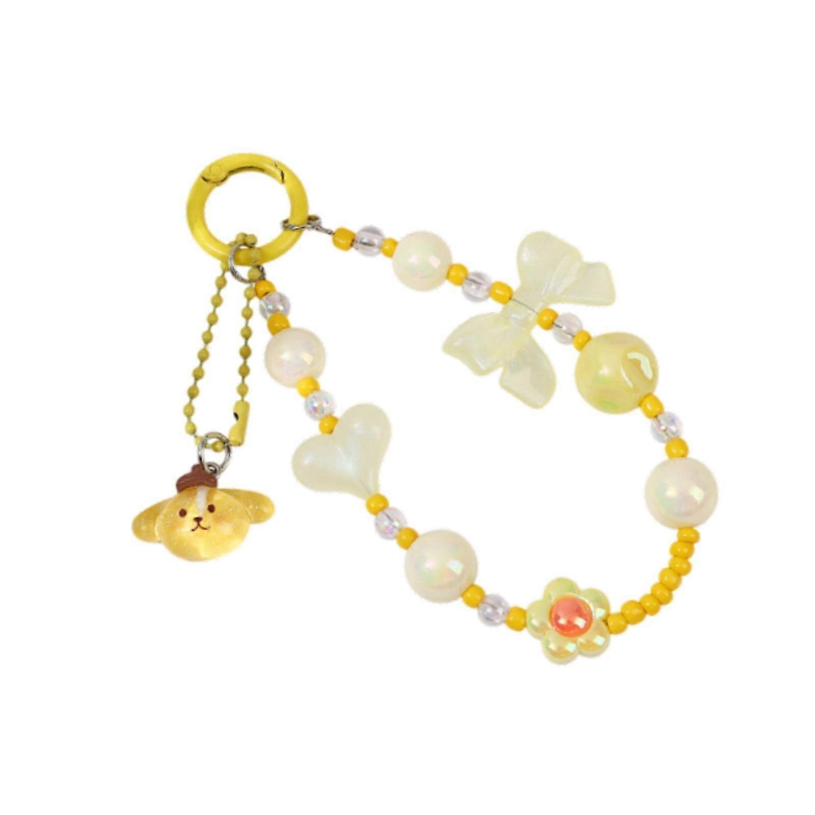 Beaded Phone Charm with Metal Hook Pendant Cartoon Lovely for Women Wristlet Yellow