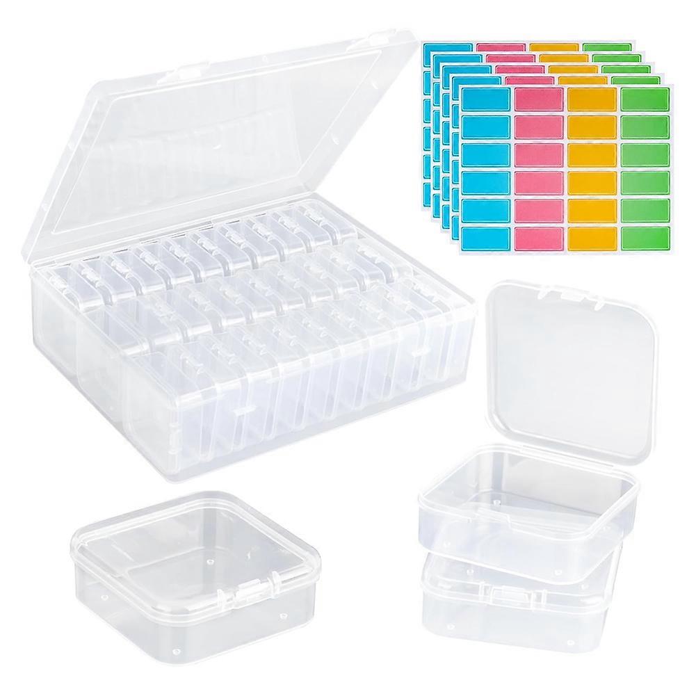 Bead Organizer Box, 30Pcs Small Clear Plastic Bead Storage Containers, 1 Craft Storage Box with Hinged Lid, 120 Labels