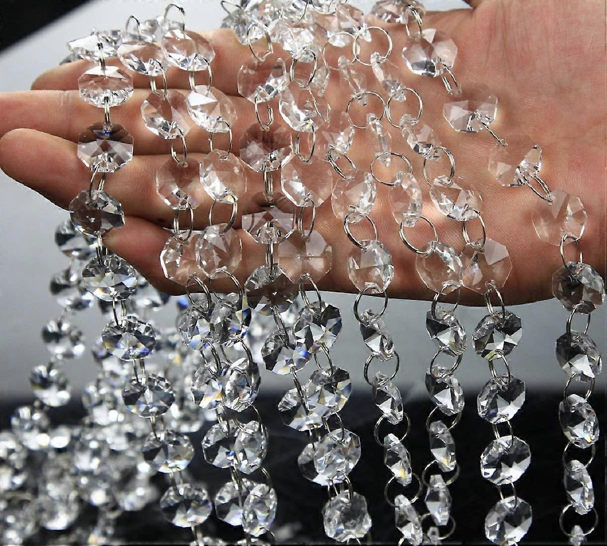 Beaded Trim Clear Garland, 10 Pack, 1000CM / 30.5FT, Crystal Chandelier Octagon Beads Chain, For DIY Decor