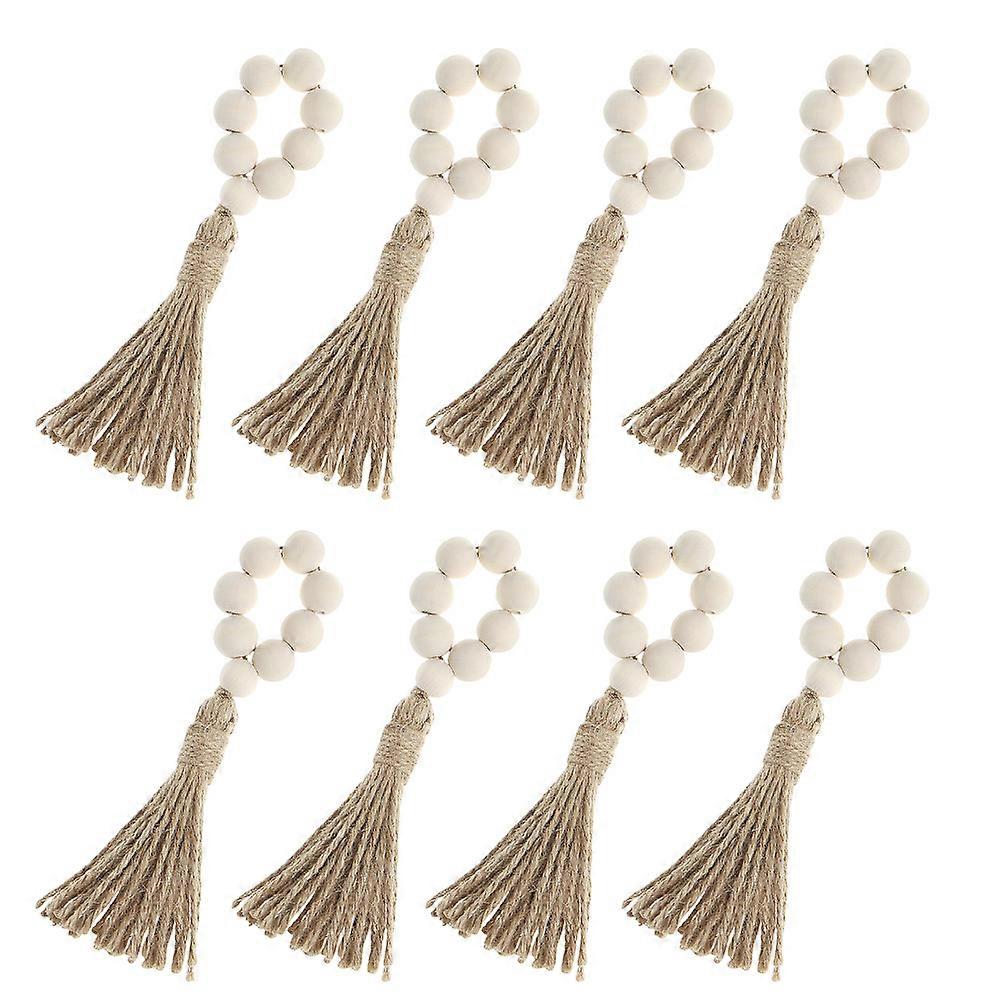 Beaded Napkin Rings Wood Material Rope Table Decoration For Picnic Guests 8Pcs