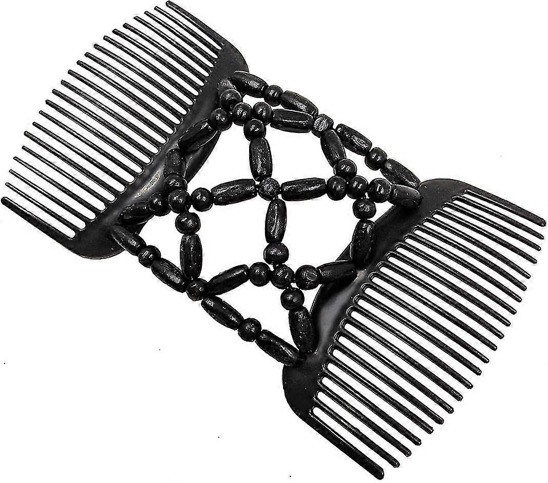 Beaded Hair Combs Magic Elastic Hair Clips Magic Hair Comb Double Row Wooden Bead Hair Comb Stretchy Hair Comb Clip Hair Accessories For Girls Women