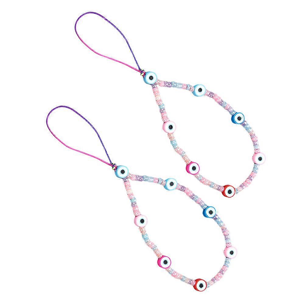Beaded Mobile Phone Lanyard Evil Eye Lanyard Keys Daily Use Soft Clay present 8.06X0.39X0.20Inch 2Pcs