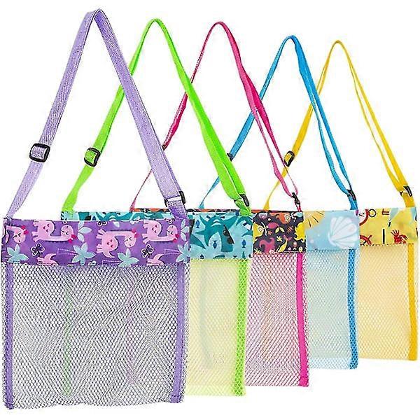 Beach Toys Shell Bags Beach Bag For Kids 5 pcs Colorful Mesh Beach Bags Kids Shell Mesh for Kids Storage Shells Fruit Vegetables or Toys (set