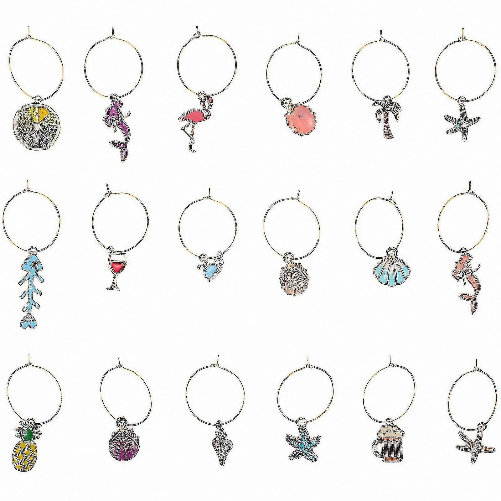 18-Piece Beach-Themed Drink Markers Shell and Animal Glass Charms for Weddings Tropical Wine Glass Identifiers