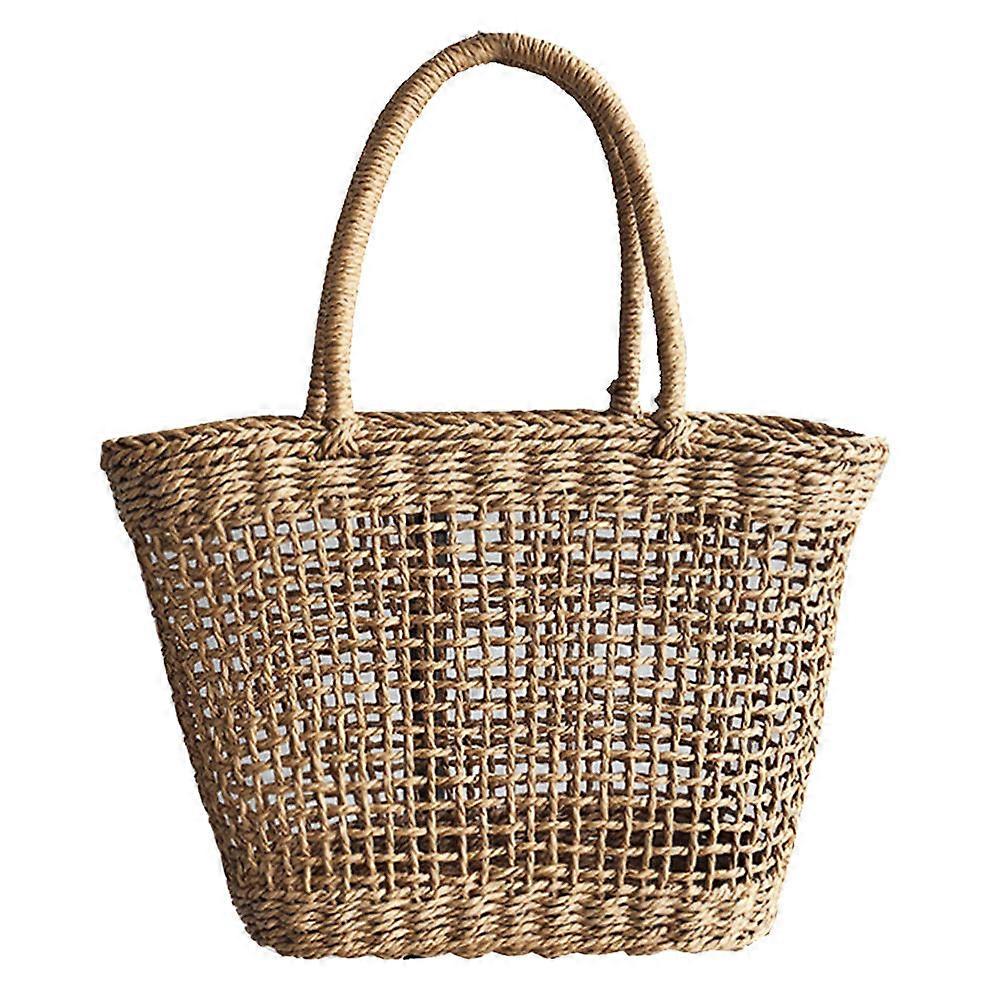 Beach Tote Handbag Woven Handbags Vacation Use Women Light Brown 25x40cm Summer Beach Handbag 1Set