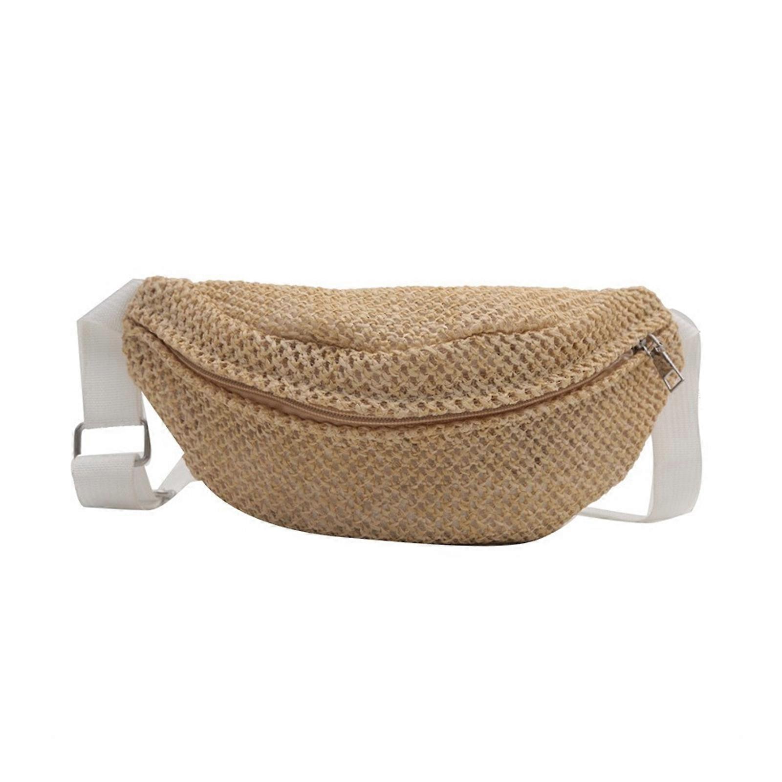 Beach Vacation Fashion Straw Chest Bag Adjustable Strap Woven Handbag Crossbody Waist Pouch Belt Bag for Women Men White