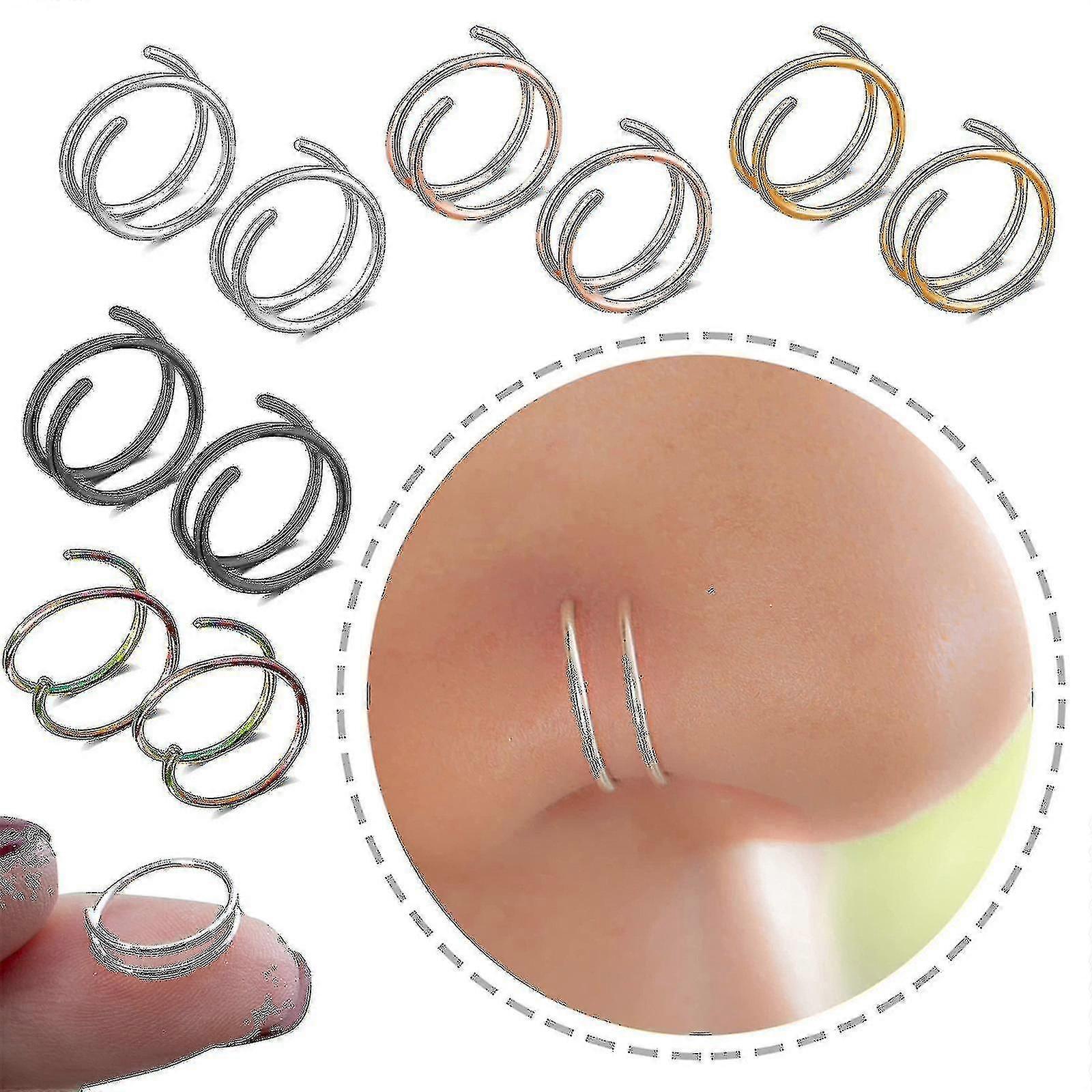 2pcs Double Nose Rings For Pierced Noses Spiral Nose Rings For Girls, Nostril Piercing Jewellery Best Gift