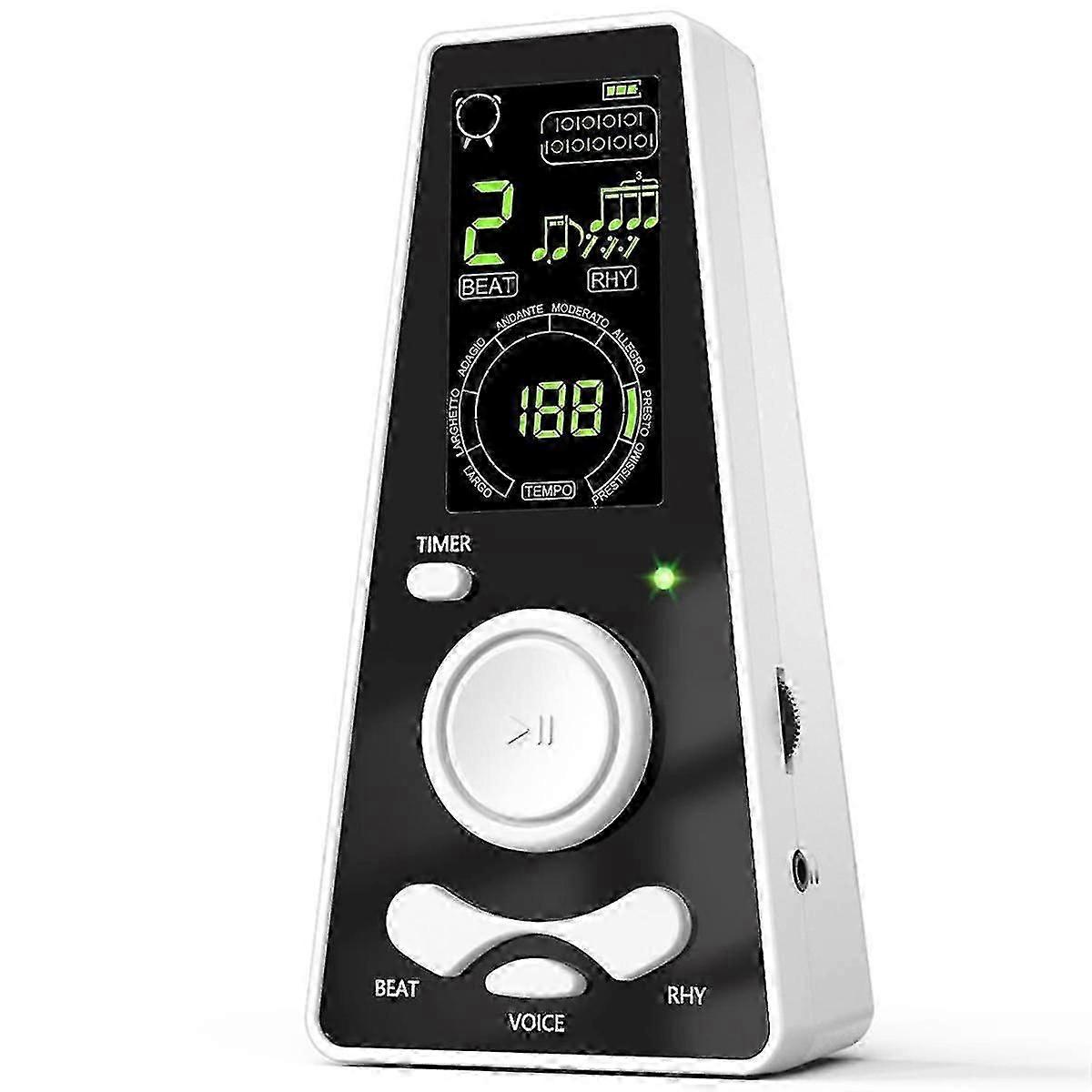 A popular choice among musicians, this metronome has a pyramid shape and features an advanced digital chip for soft vocal counting and accurate . It's also and can be powered by Type-C or 3 AAA batteries. With the digital LCD display and knobs, you can quickly adjust tempo while playing the instrument easily, which is more convenient and reliable than a mechanical metronome. You can control the volume of your with the volume control, or use the 1/8inch (3.5mm) audio stereo output to practice quietly without disturbing others. Built-in vocals and electronic sounds, covering a wide rhythm range from 40 to 208 /minute, multiple (0, 1, 2, 3, 4, 5, 6, 7, 8, 9) 9 different rhythm modes available Helps you develop a sense of rhythm in any music genre. This metronome is suitable for a of instruments such as classical, chromatic, electric guitar, bass, violin, ukulele, piano, drums, etc. It's perfect for players of all ages, a great practice tool for both beginners and experienced musicians, and makes a great birthdays, Christmas, Thanksgiving, and more. Colour:White Material:plastic Package Contents: 1 x Digital Metronome Only the above package content, other products are not included. Note: Light reflection and different displays may cause the color of the item in the picture a little different from the real thing. The measurement allowed error is +/- 1-3cm.
