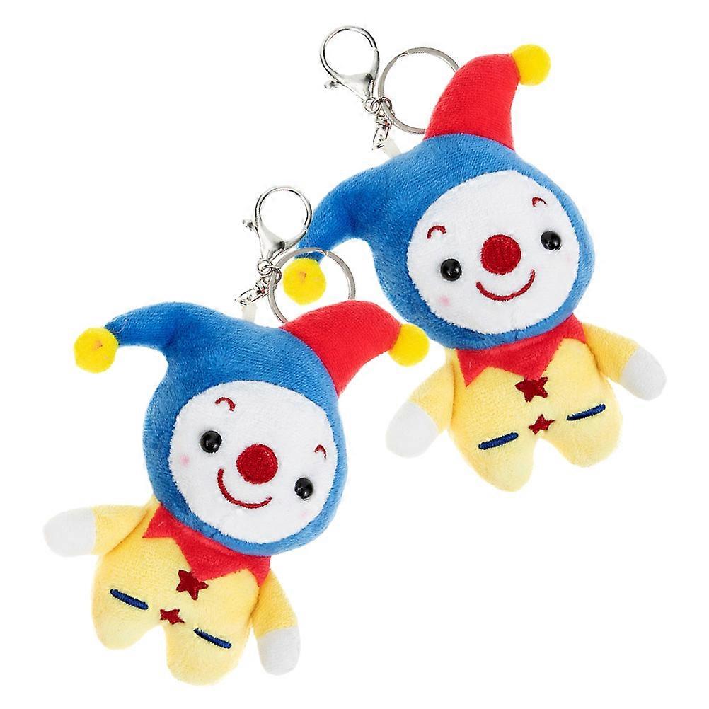 Clown Face Keychain Plush Pendant For Backpacks And Car Keys Alloy Material 2Pcs