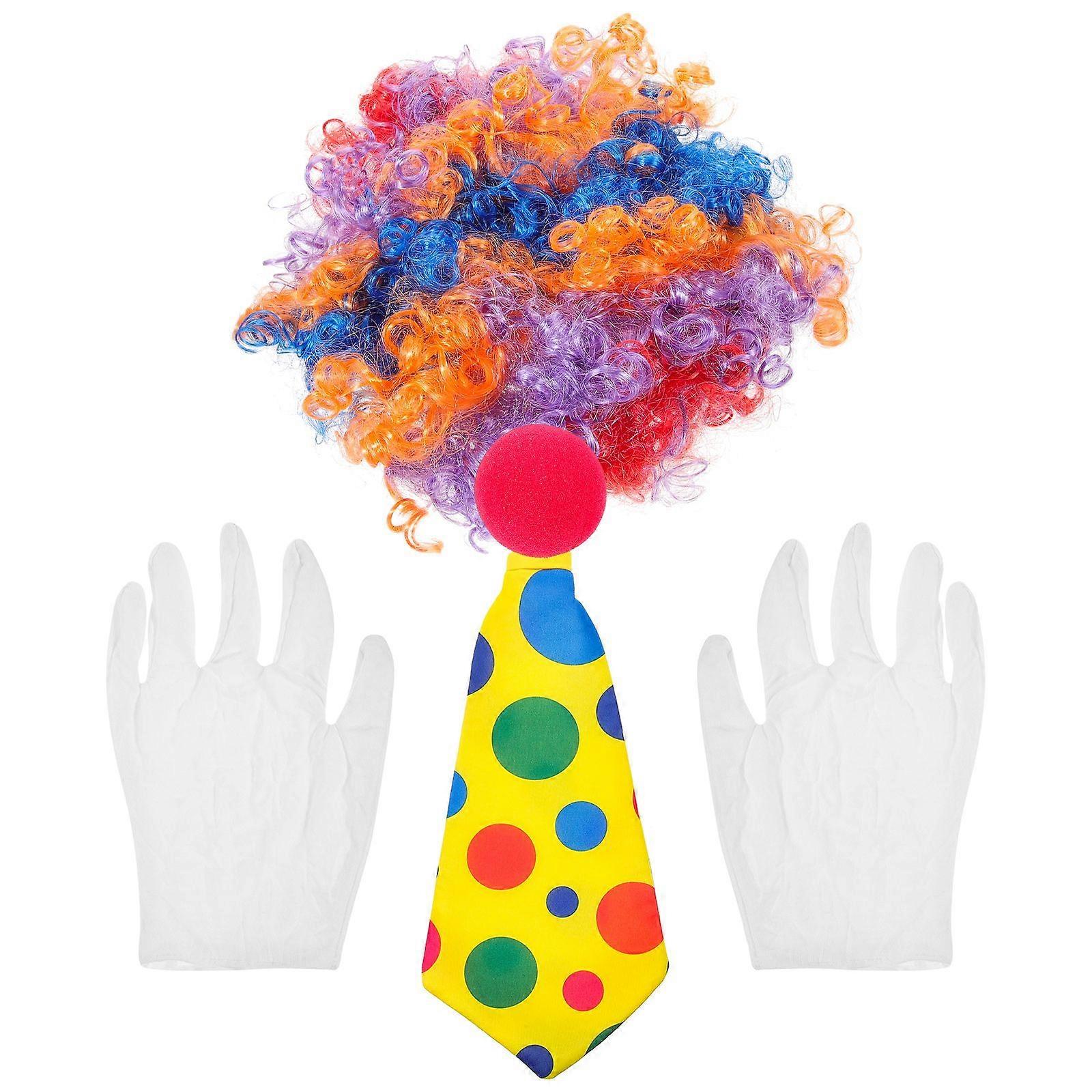 1 Set of Clown Costume Set Clown Wig Nose Bow Tie Gloves Accessories for Clown Parties
