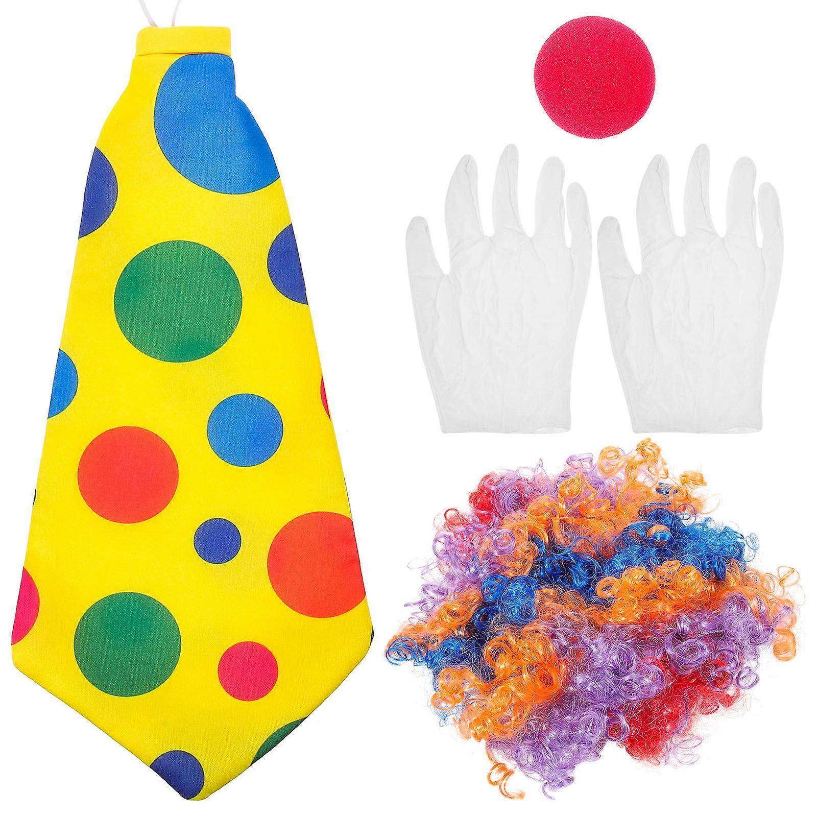Clown Props Set Wig Nose Tie Gloves Clown Costume Accessories for Adult Halloween 1Set