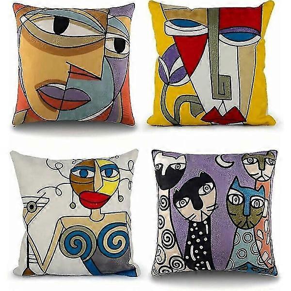 Picasso Cushion Cover - Set of 4 | 45 x 45 cm | Embroidered Cotton Linen | Scandinavian Style | Decoration