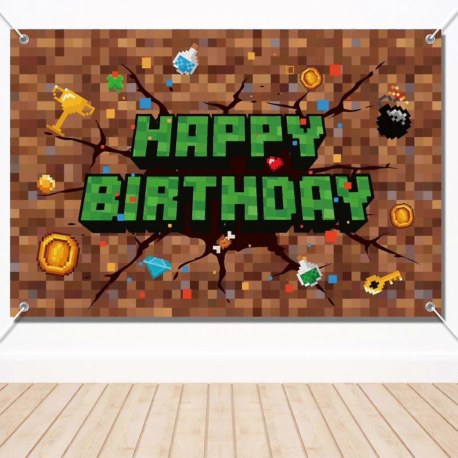 Pixel Birthday Decorations 5x3 Ft Banner Backdrop Miner TNT Pixel Themed Video Game Kids Party Decor