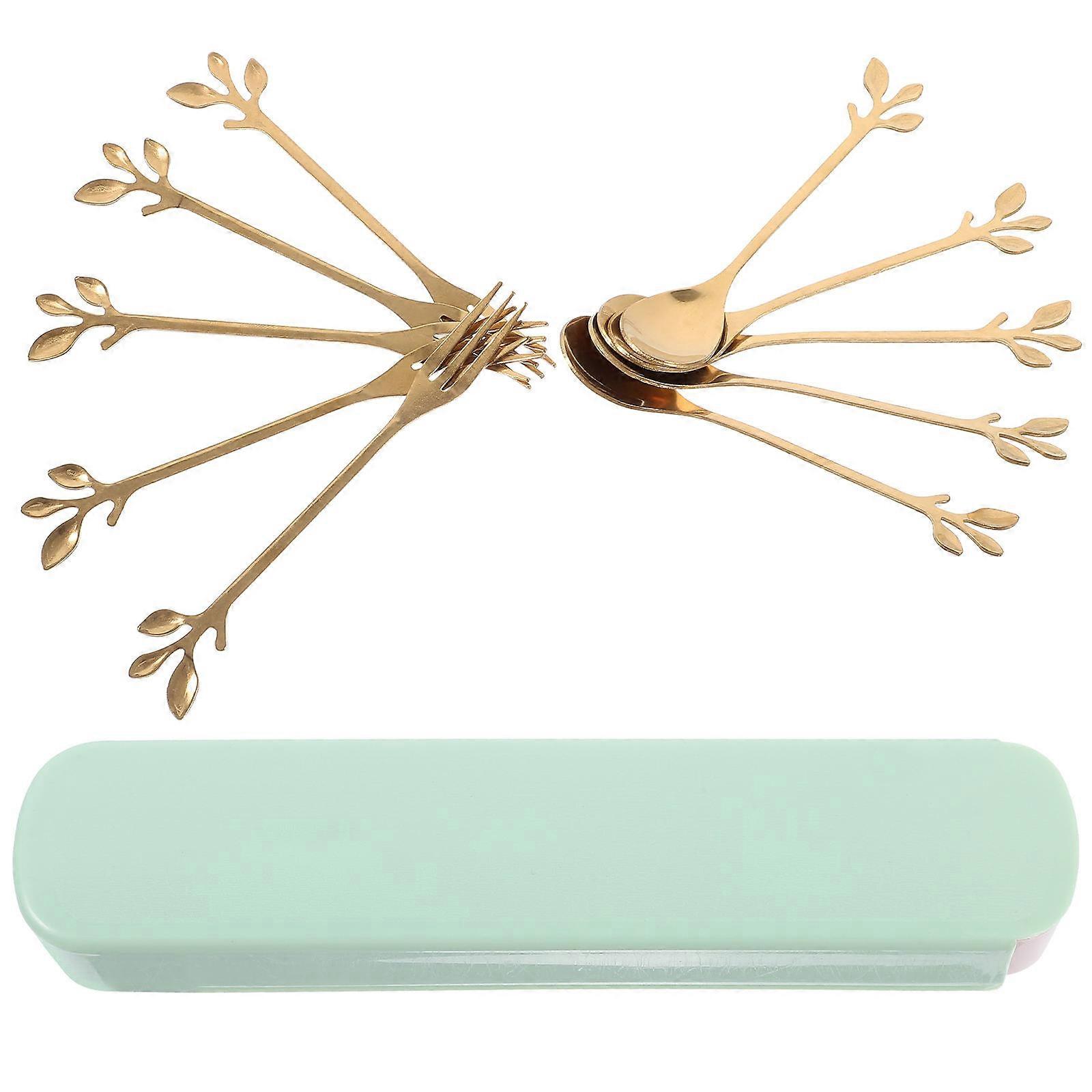 Stainless Steel Dessert Forks And Spoons Set For Picnic And Potluck Golden Color 12.20X0.80X0.80CM Fork 12.20X2.40X1.00CM Spoon 1Set