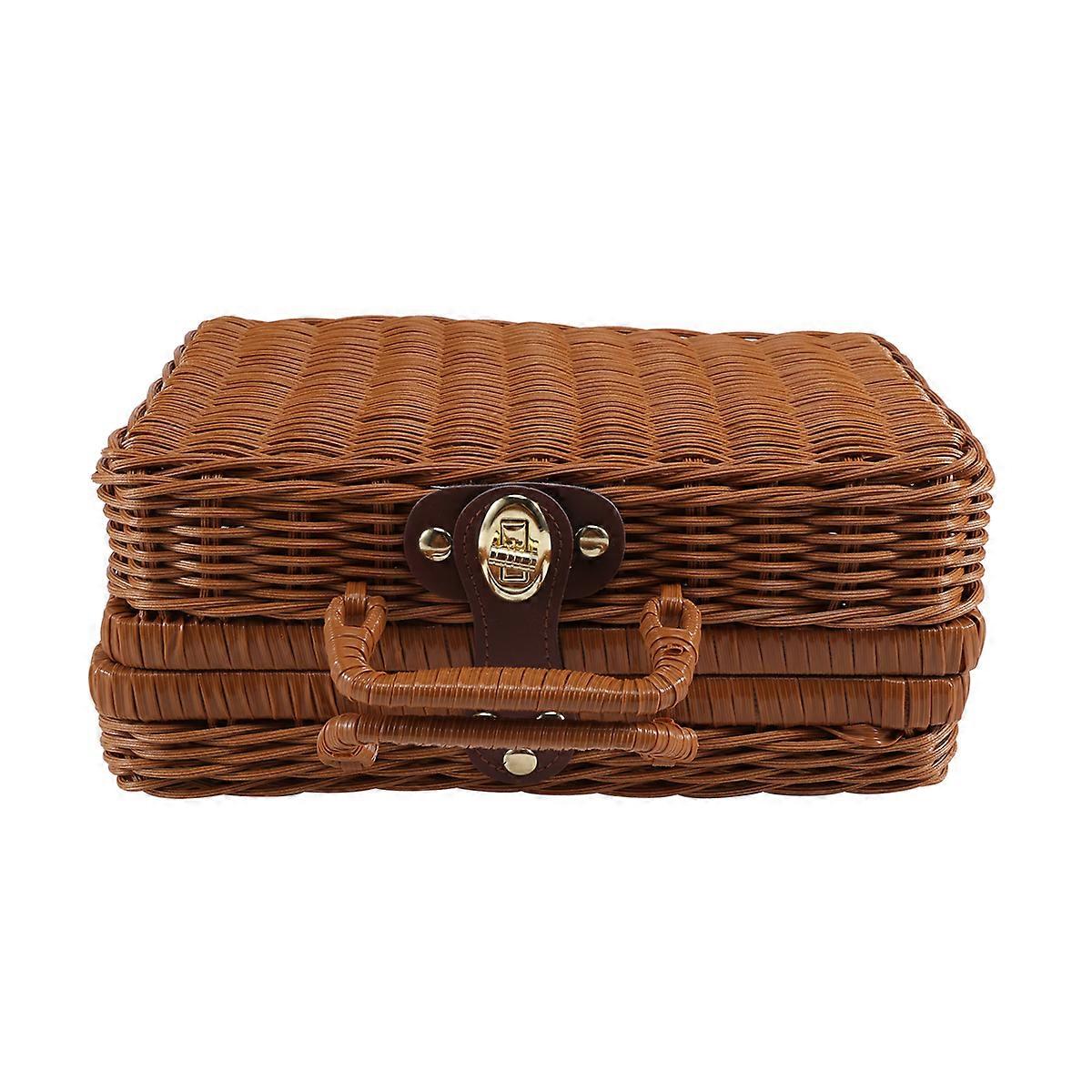 Picnic Basket,Woven Vintage Suitcase Woven Storage Basket Rattan Storage Case Picnic Weave Laundry B