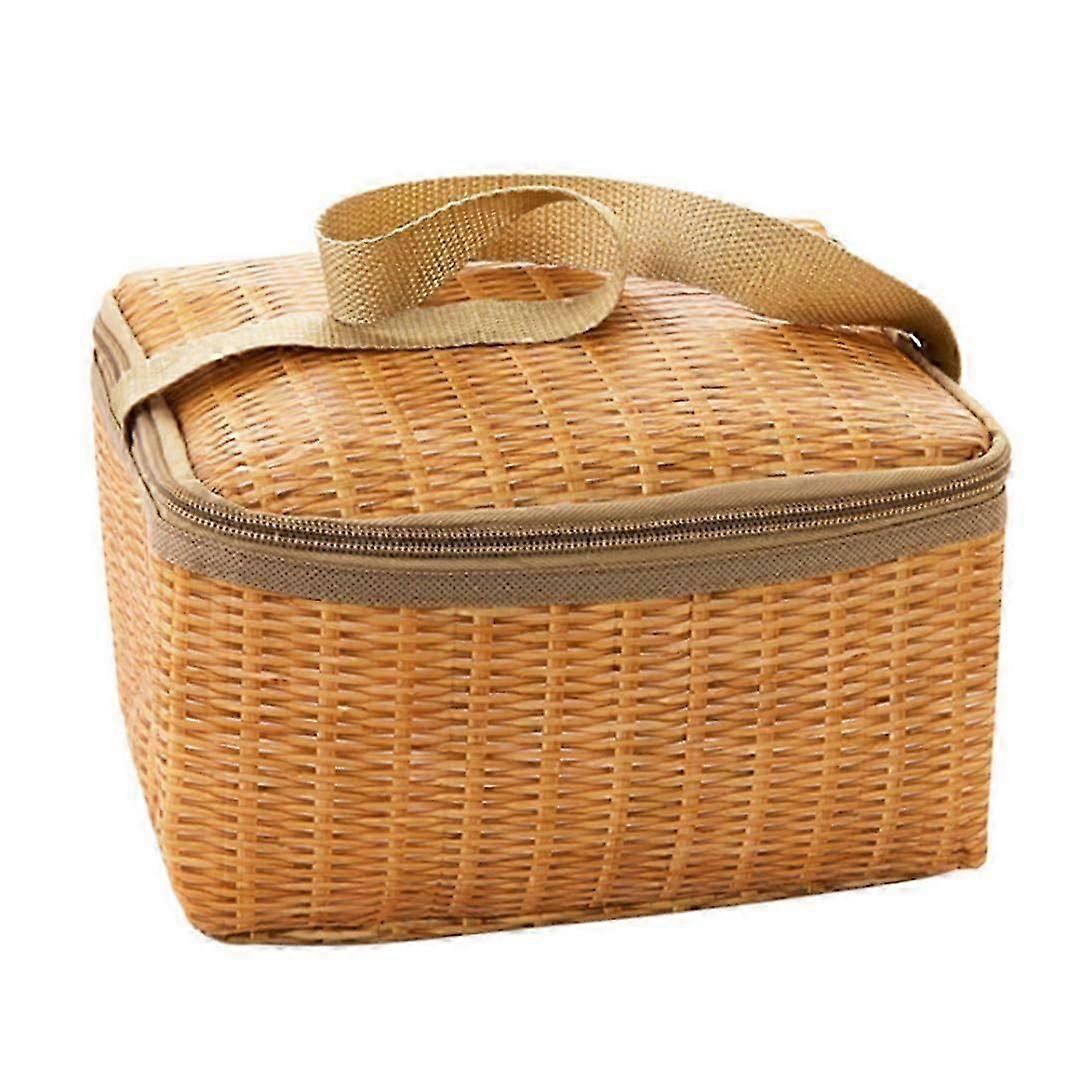 Picnic Bag Thermal Food Basket Lunch Imitation Rattan Insulated Cooler Bag Lunch Bag