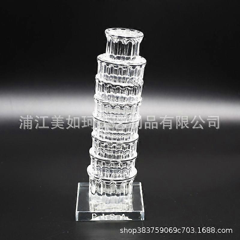Glass Mini Leaning Tower Of Pisa Statue: Clear Architectural Model - Italy Building Crafts Travel Souvenir For Home Decoration Desktop Ornament