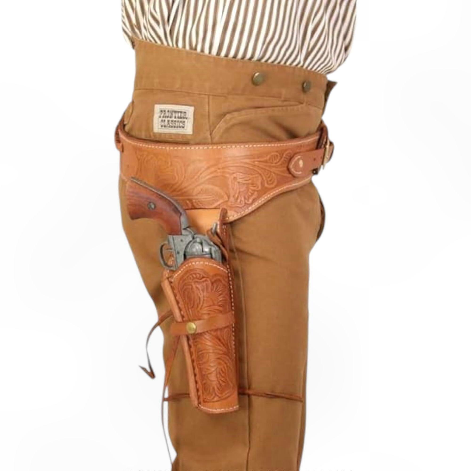 Old West Style Handcrafted Leather Holster and Belt for Pistols and Revolvers, Compatible with .22, .357, .44, .45 Caliber Firearms, Fits 6 to 9 Inch