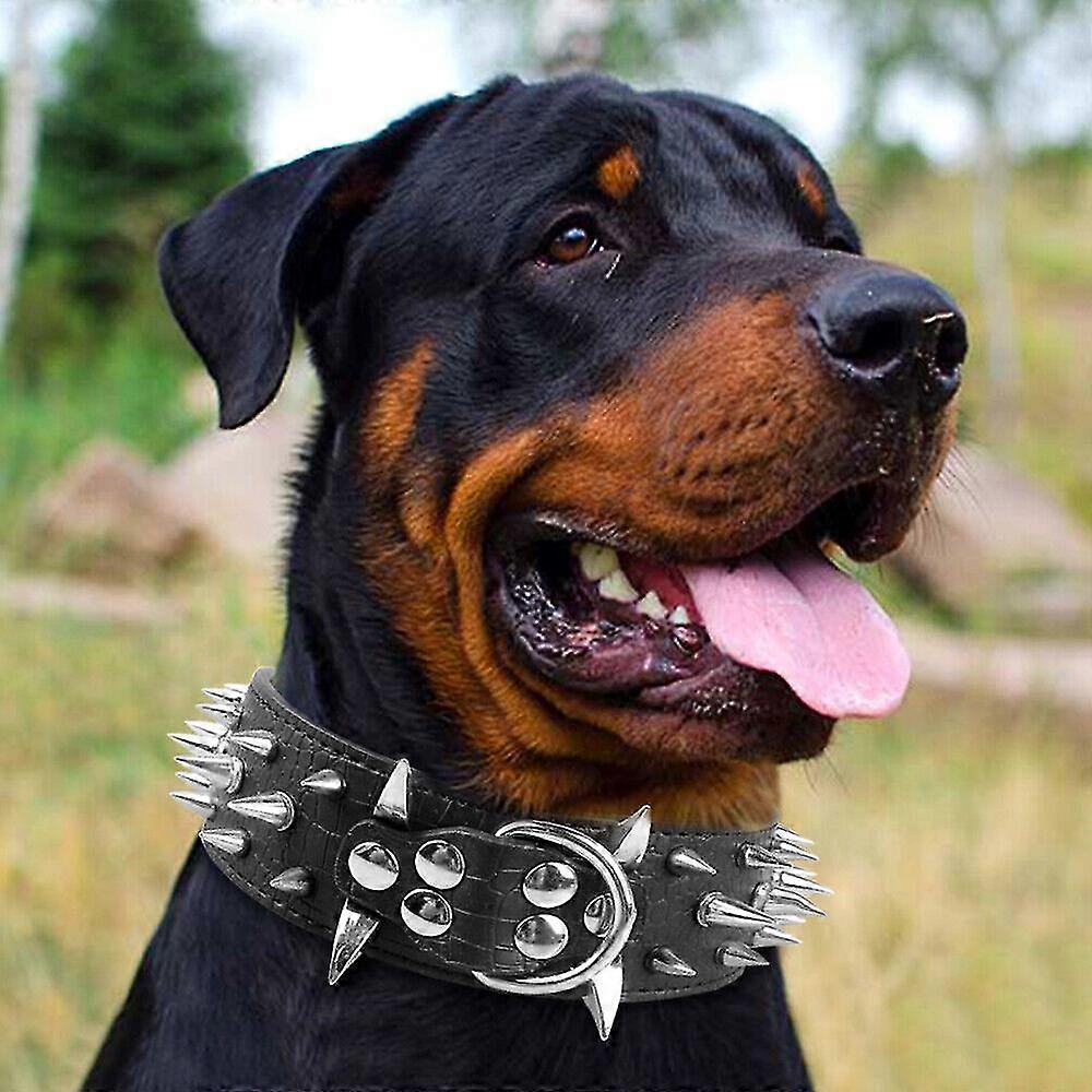 5cm Wide Studded Dog Collars For Pitbull Mastiff S:Neck for 15-18\ Black