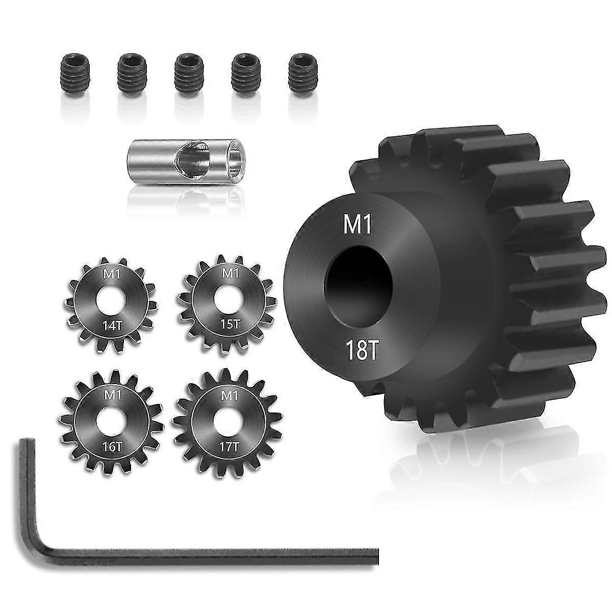 Pinion Gear Set 5pcs, 14t 15t 16t 17t 18t M1 Pinion Gear Metal Hardened Steel Fit 5mm Rc Motor Shaft With Hex Key
