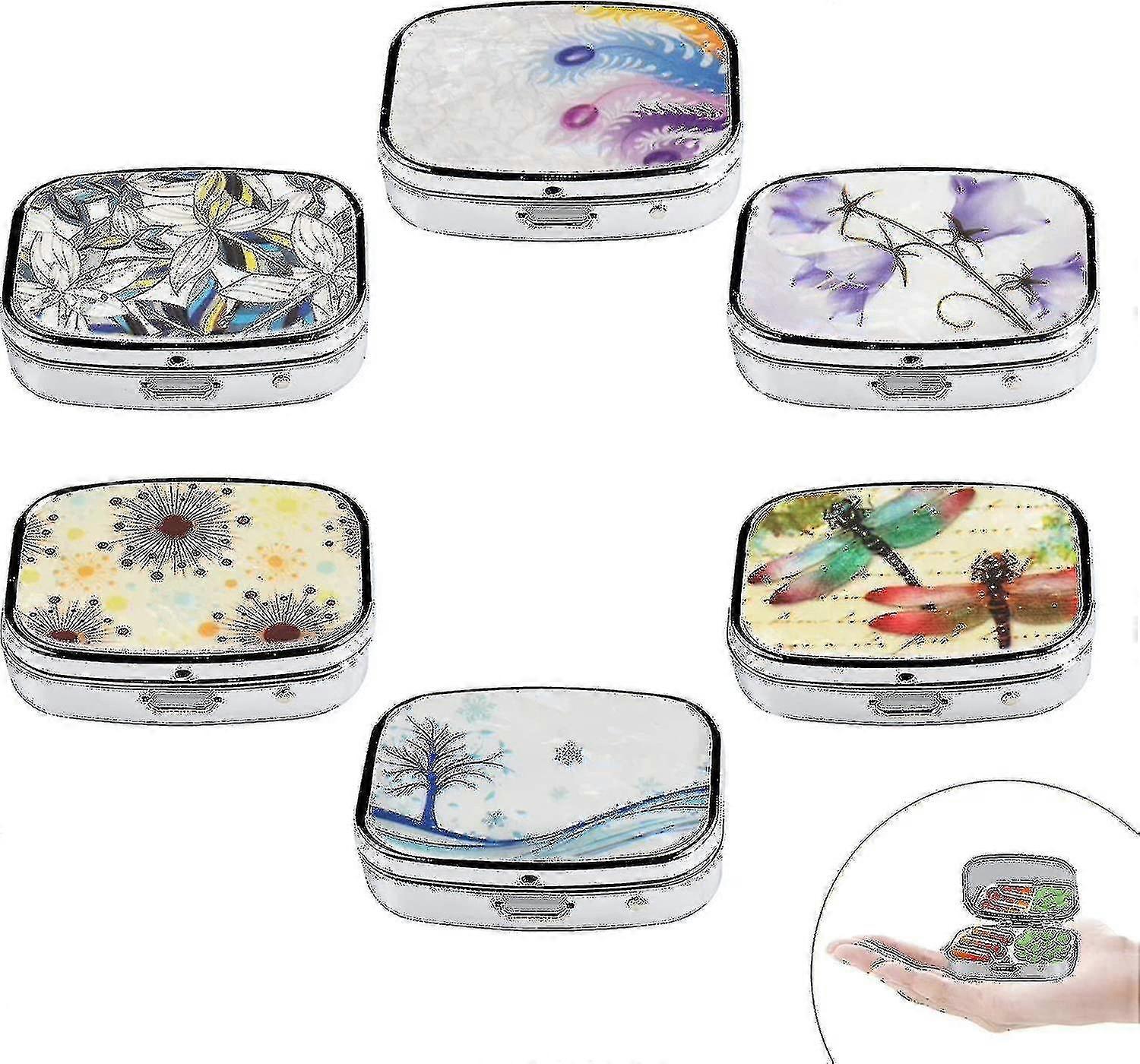 Pack Of 6 Pill Boxes, Pill Case, Pill Box, Metal With L, 2 Compartments, Portable Travel