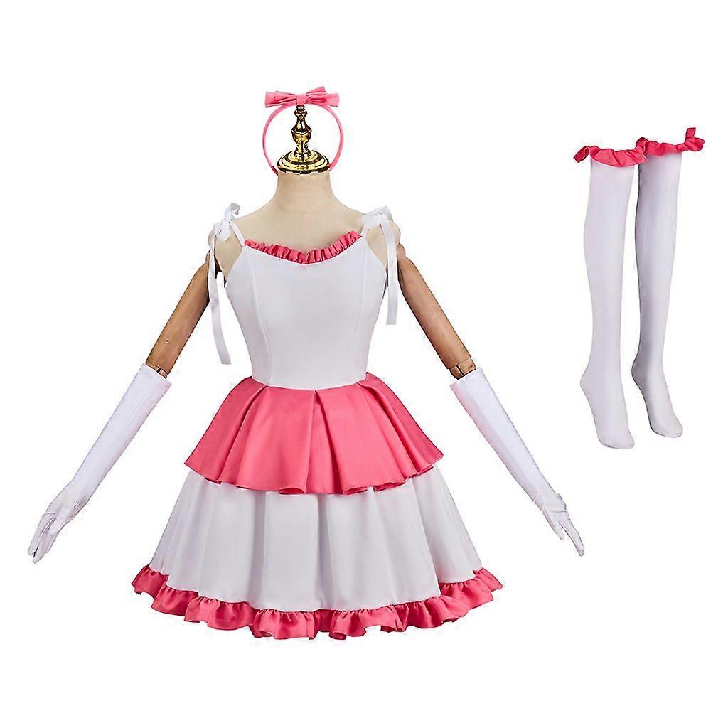 Cute Pink and White COS Dress Magical Girl Style, with Pink Bow Headband, Gloves, and Stockings, Perfect for Cosplay, Themed Parties, and Anime Conve
