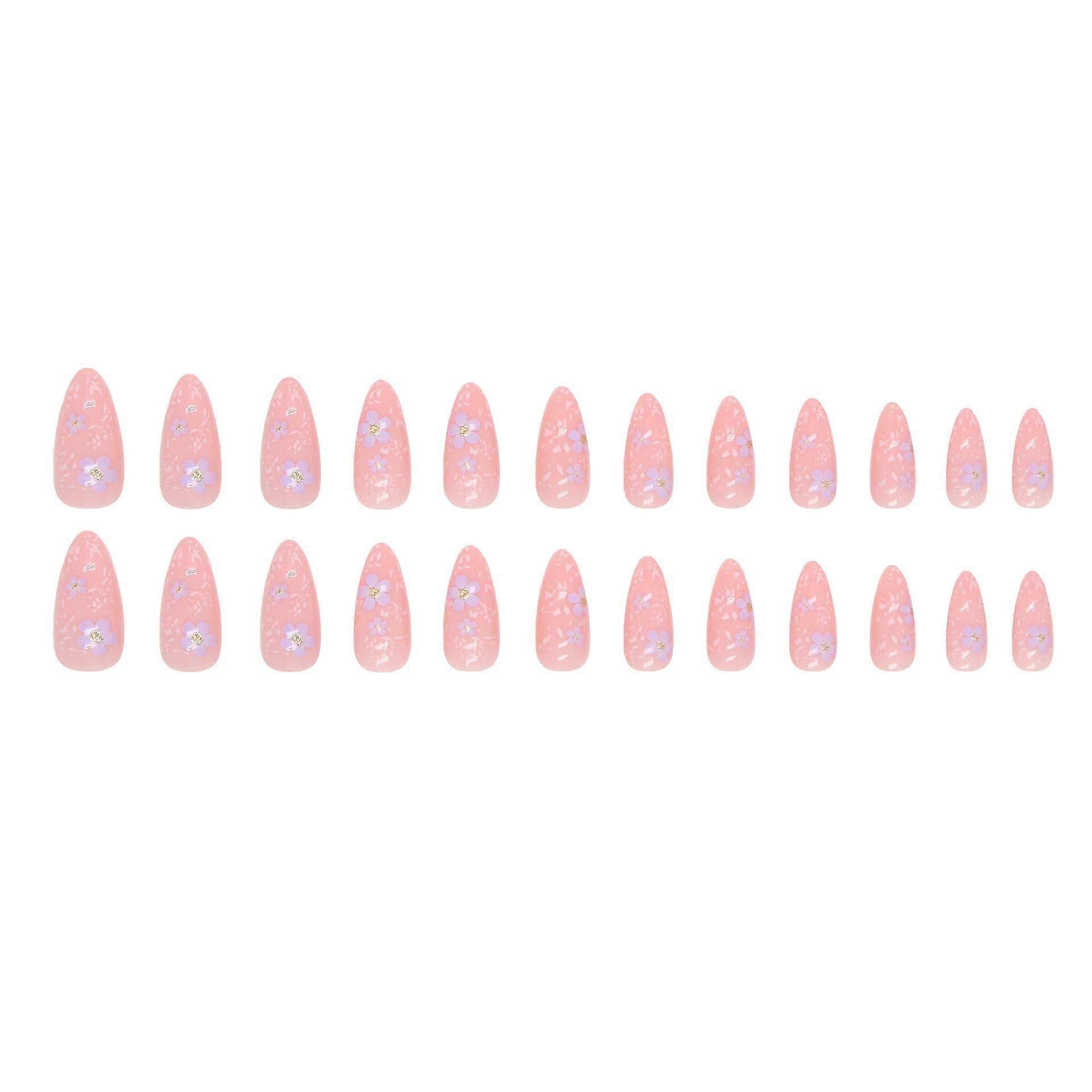 Pink With Gold Foil Decor Almond False Manicure With Harmless And Smooth Edge Nails Glue Models