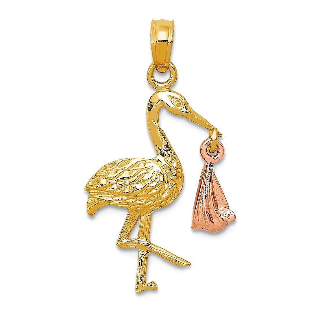 10k Gold Stork With Pink Dangling 2 d Charm 27x15mm Wide Pendant Necklace for Women - .8 Grams
