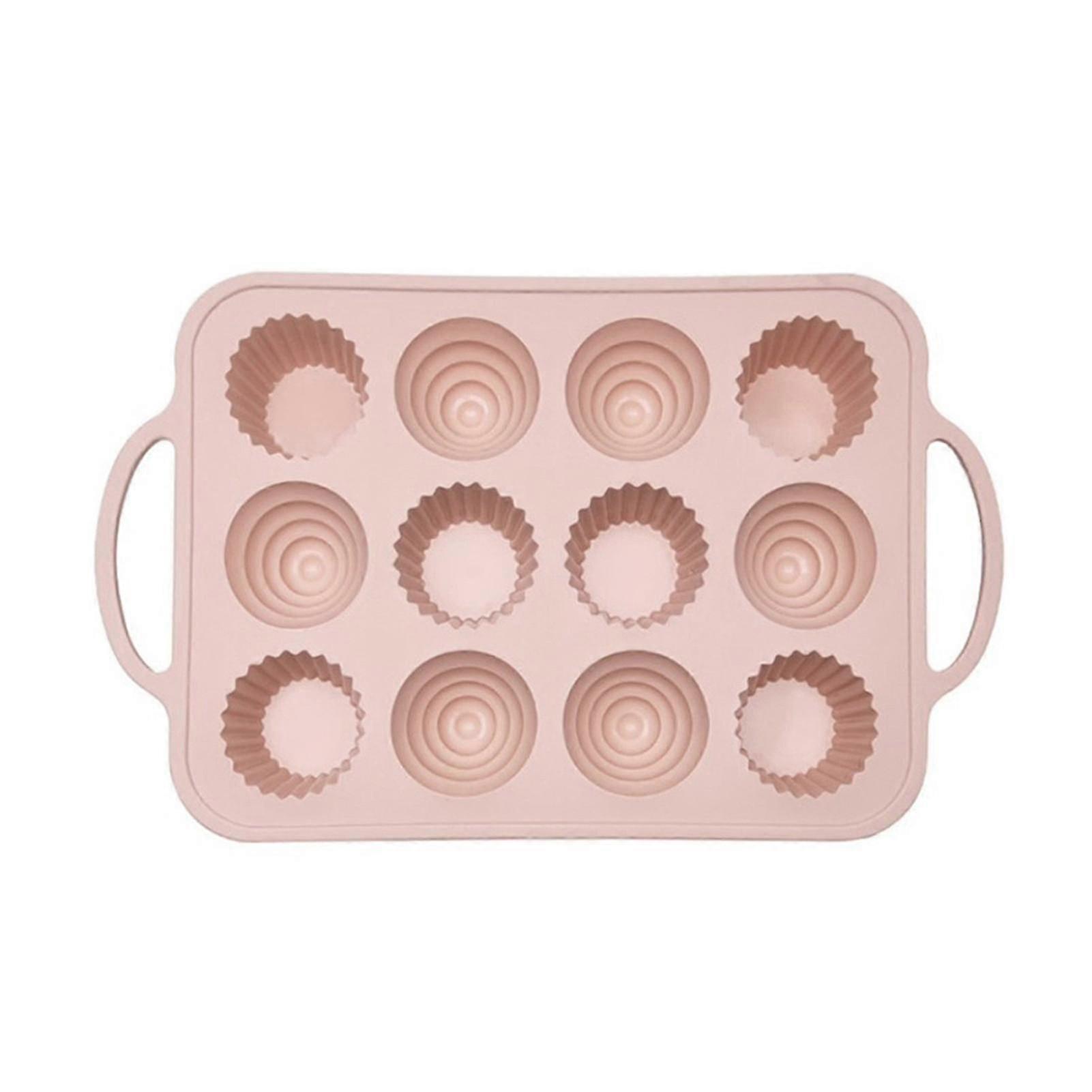 Pink Silicone Baking Cups, 12-Cup Muffin Pan, Reusable Tart Mold, Non-Stick Cake Stencil With Handle