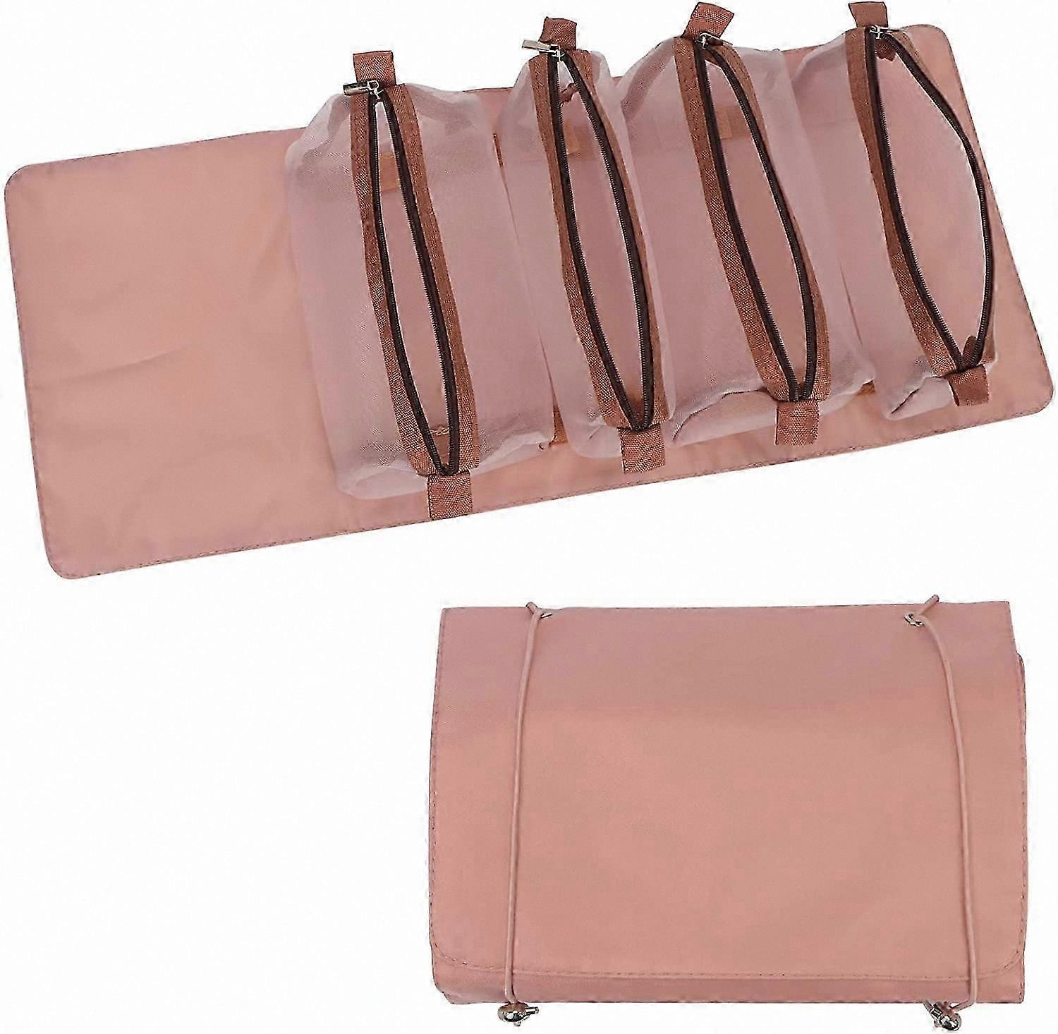 Pink Travel Makeup Organizer with 4 Compartments, Foldable Toiletry Bag for Cosmetics and Essentials Storage Solution
