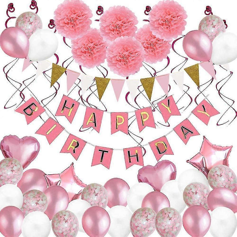 Birthday Decorations Balloons Party Decoration For Girl Women With Pink Banner