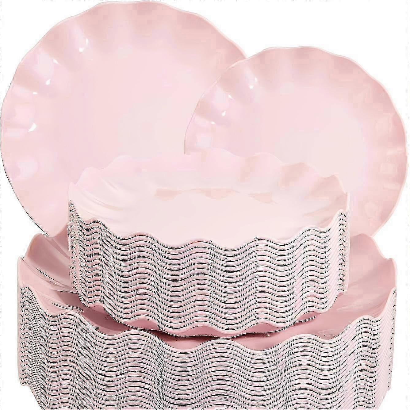 Set Of 24 Pink Plates, Reusable Dinner Plates Durable And Microwave Dishwasher Safe, Dish For Parties, Light Weight Plates For Wed SZRH A-X 2025