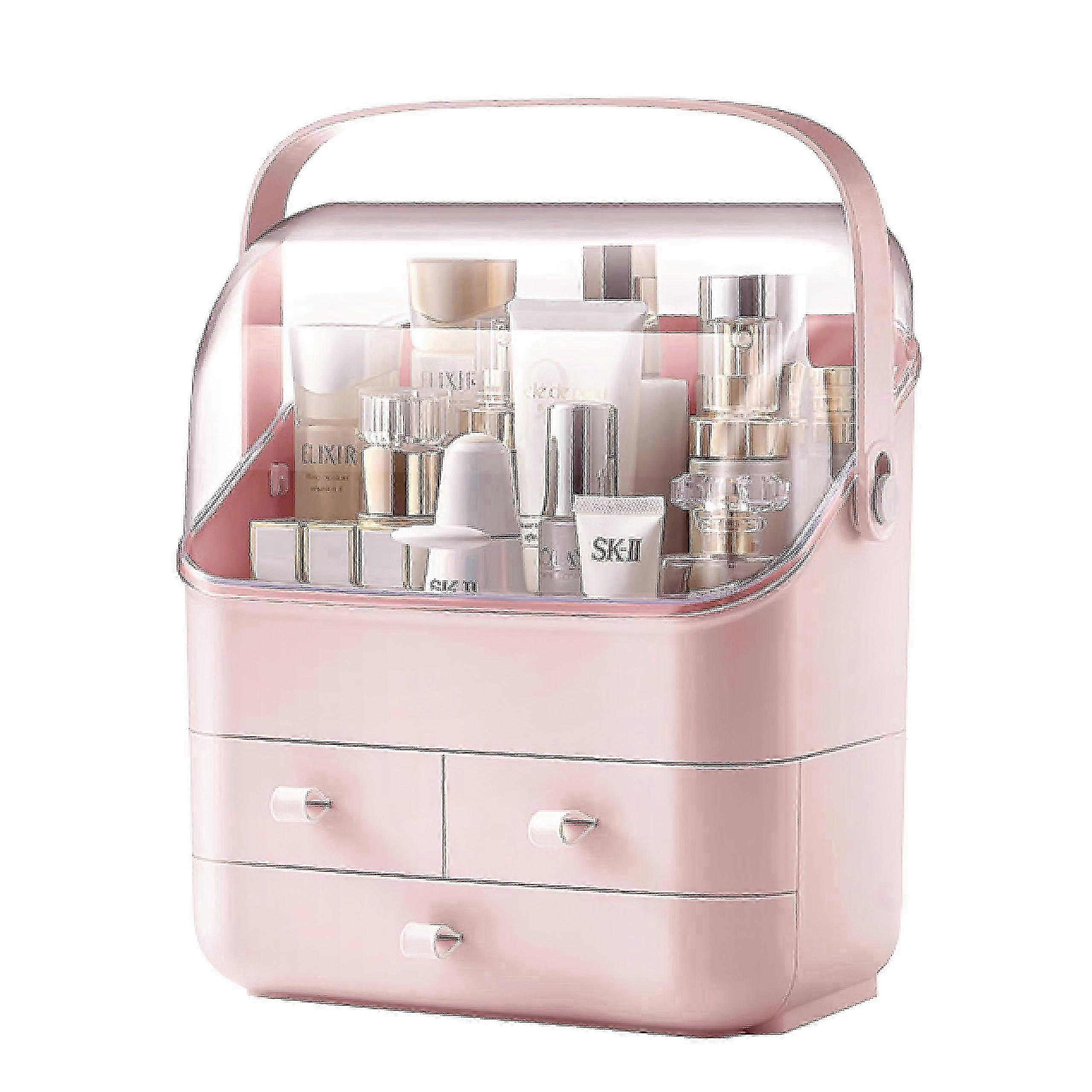 Pink Makeup Storage Bin Countertop Vanity Organizer