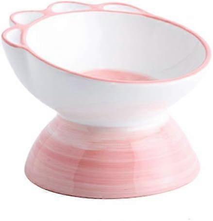 Pink Small Ceramic Tilted Elevated Cat Dog Bowl Raised Cat Food Water Bowl Dish Pet Comfort Feeding Bowls