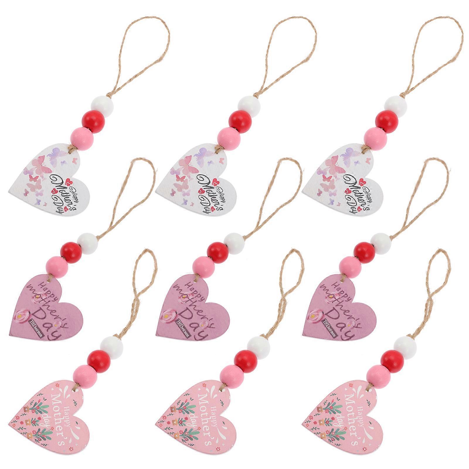 Pink Mothers Day Beads String Wooden Heart Shape Pendant for Women