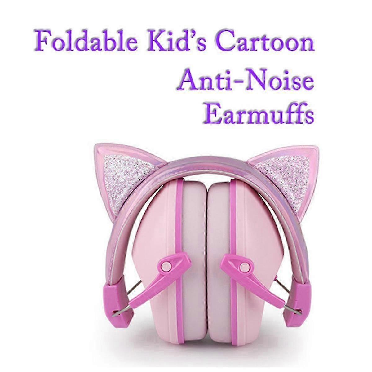 Pink Cat Ears Kids Earmuffs Adjustable Anti-Noise Hearing Protector for Children for Study & Sleep N